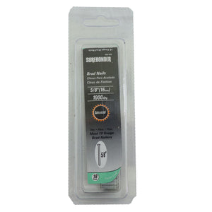 Surebonder 400-58G Brad Nails - 18 Gauge, 5/8" Length - 1000 count - For use with Surebonder 9750. 18g Brad Nails. 5/8" Length. Brad Nail. 1000 Per Box